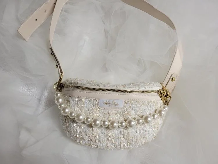 Categories: Select a Category veils jewelry belts and sashes hair pieces bags beauty bags Pearl Mini-Bag $75.00 Bridal Fanny Pack $75.00